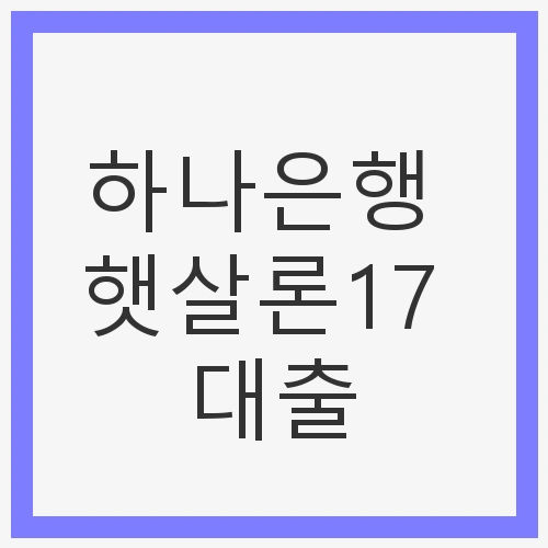 하나은행 햇살론17 대출의 기본 조건